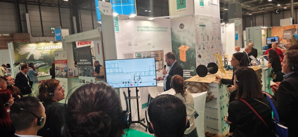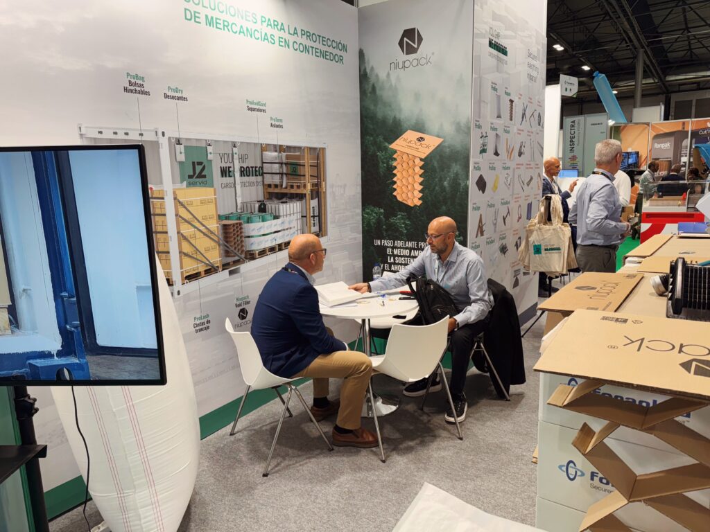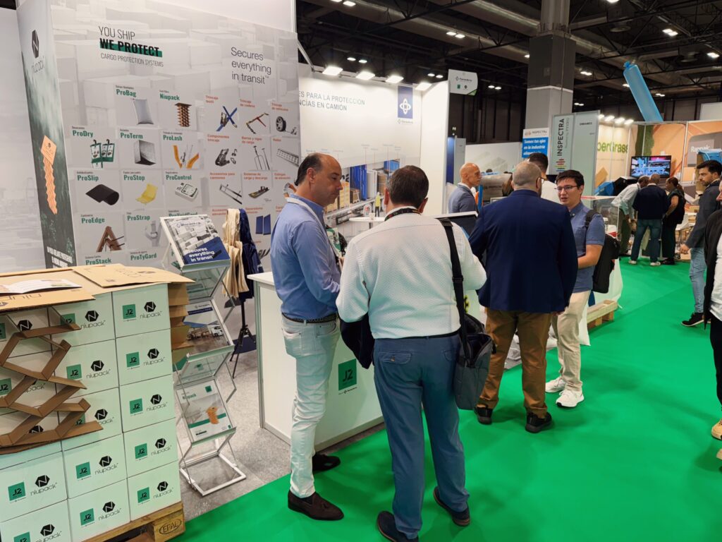 Durante los dos días de feria, presentamos nuestras líneas de producto orientadas a mejorar la seguridad, eficiencia y sostenibilidad en el transporte de mercancías, con especial protagonismo de Niupack, el sistema ecológico que permite rellenar huecos entre palets y evitar desplazamientos durante el transporte.